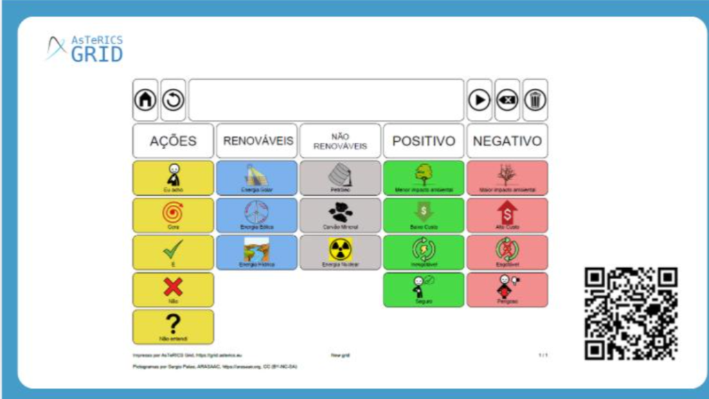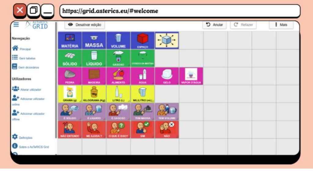 Mas os licenciandos também se preocuparam com o conteúdo. Usando o aplicativo Asterics Grid e seguindo os princípios de organização semântica do PELP-TEA, eles criaram pranchas de CAA personalizadas para o currículo de Ciências.