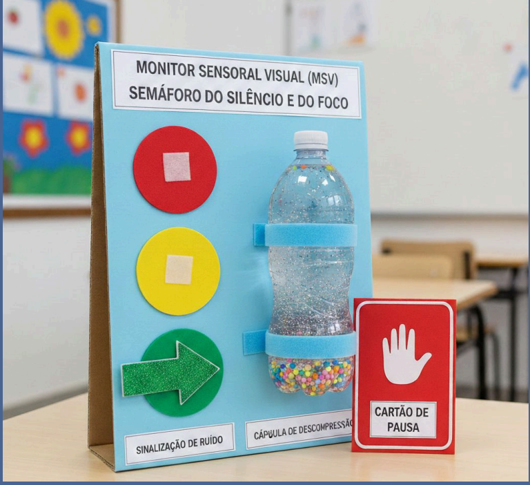 Um grupo criou o “Semáforo do Silêncio e Foco” , um Monitor Sensorial Visual (MSV) para lidar com desafios reais da sala de aula: